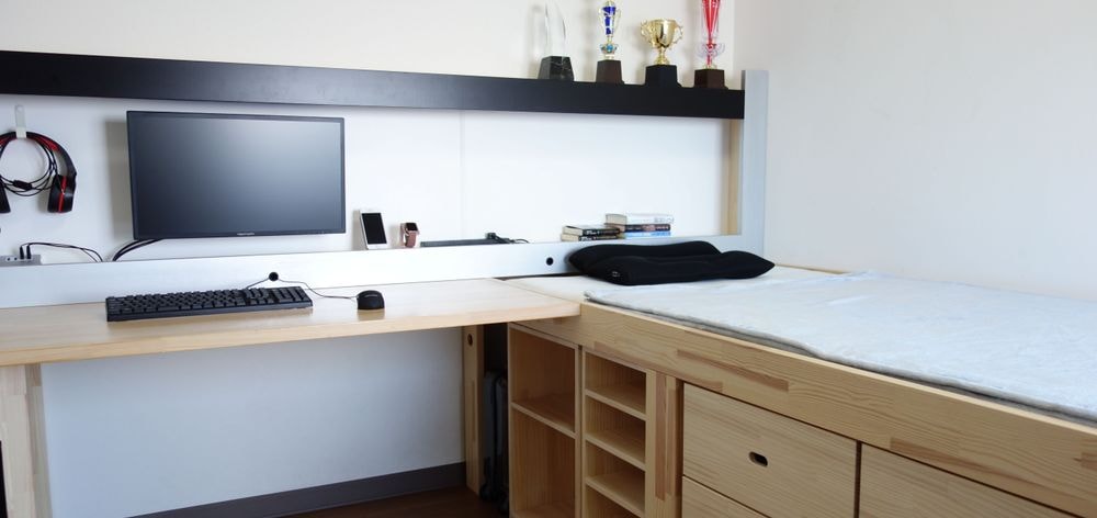 当時は狭い部屋を少しでも活用しようと考えて高床式のパイプベッドを購入。